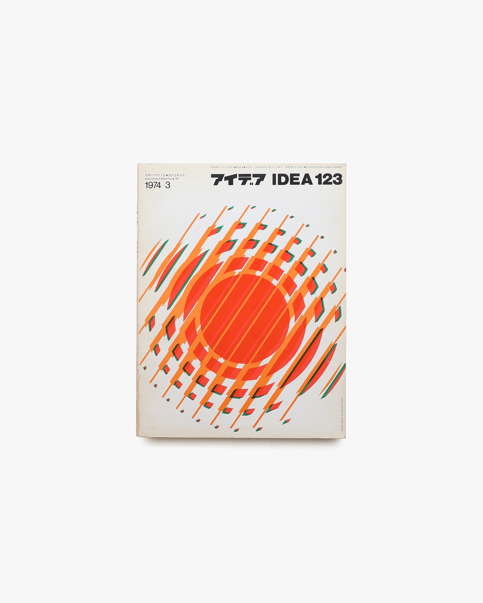 グラフィックデザイン誌『アイデア』No.123(1974年3月号)。巻頭では、カナダを代表するグラフィックデザイナー バートン・クレイマー を特集し、本号の表紙デザインとあわせて、その造形感覚と仕事の広がりを紹介している。そのほか、シモン・ボイコによる「ポーランドの若いデザイナーたち」、大智浩「世界インダストリアルデザイン会議」、ウィルソン・マクリーンのイラストレーション論、ジェリー・ピンクニーの特集などを収録。