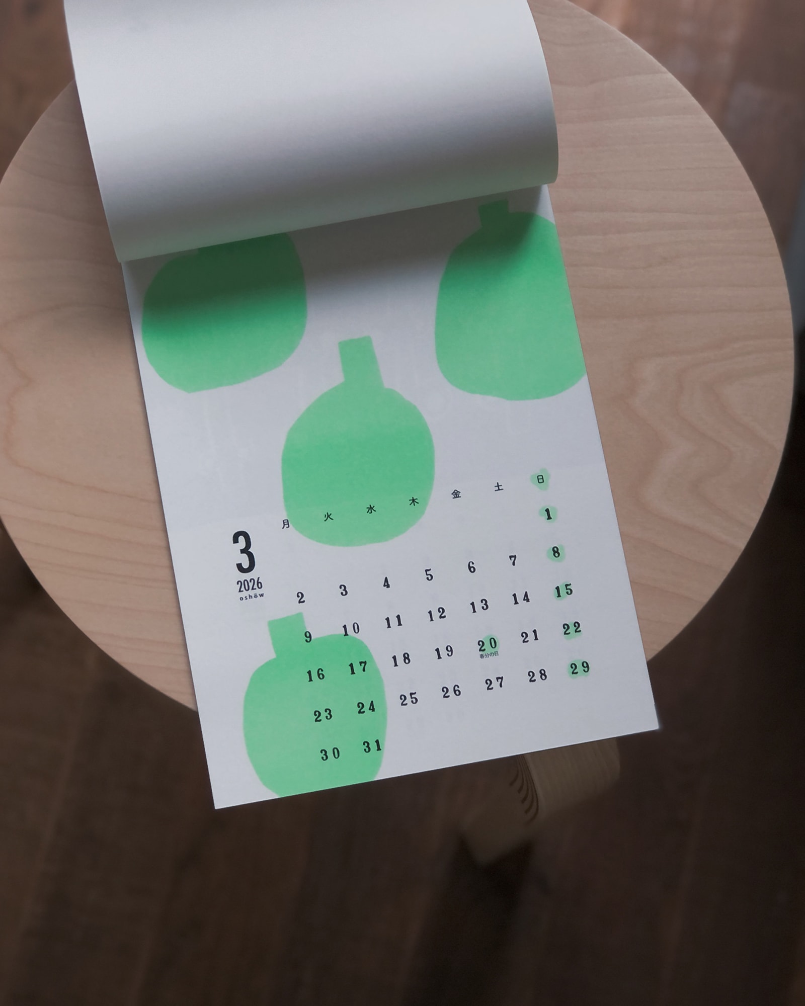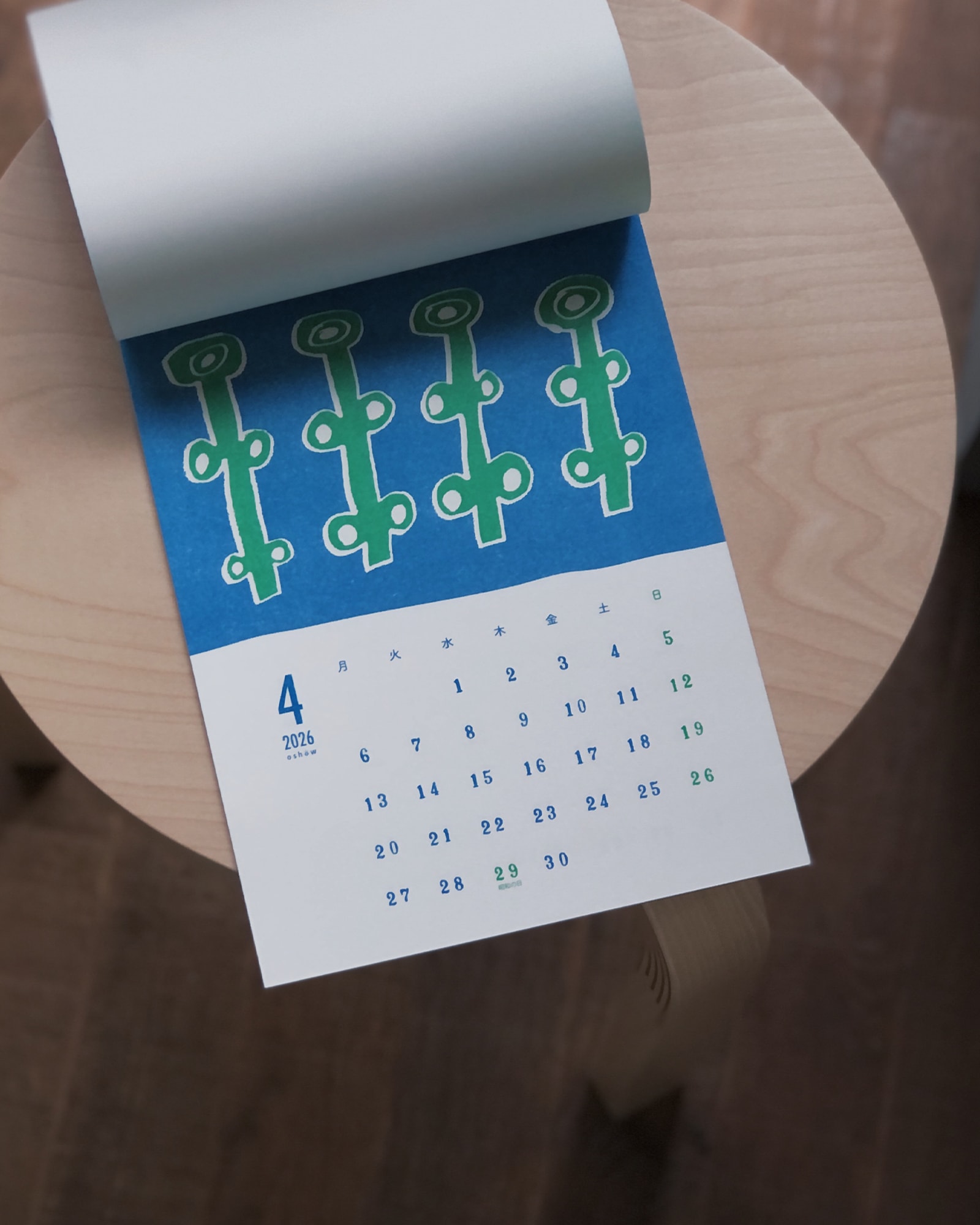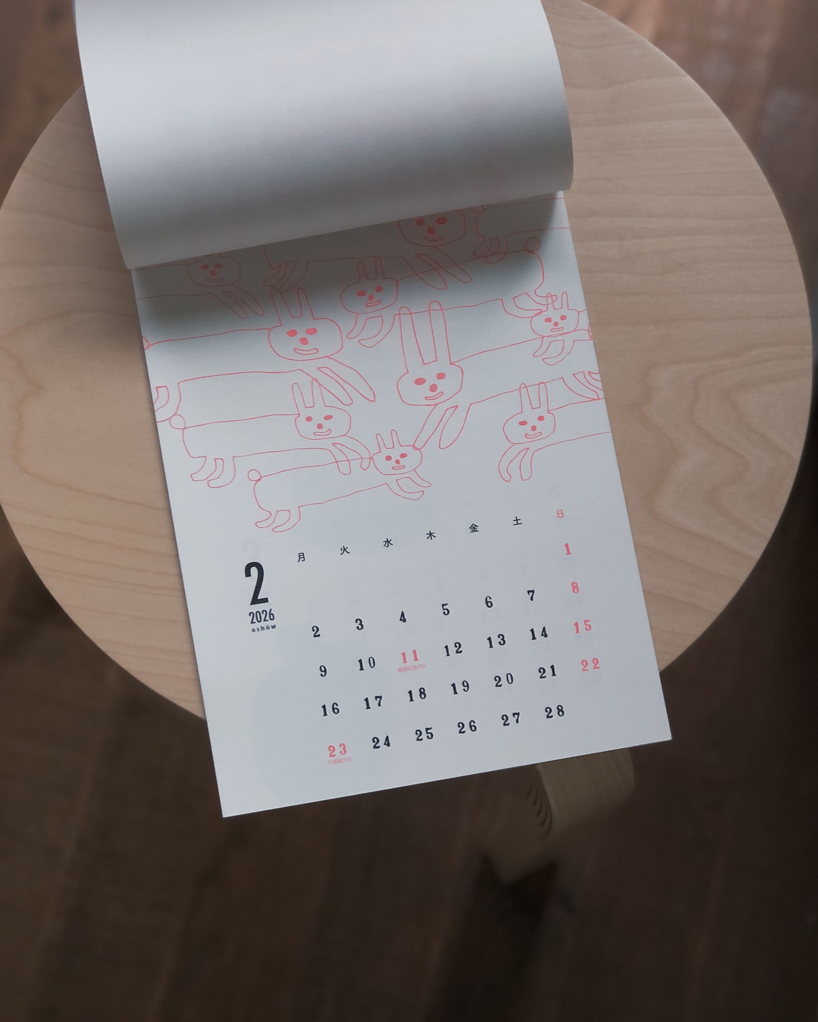 福岡在住のイラストレーター、oshowによる2026年カレンダー。