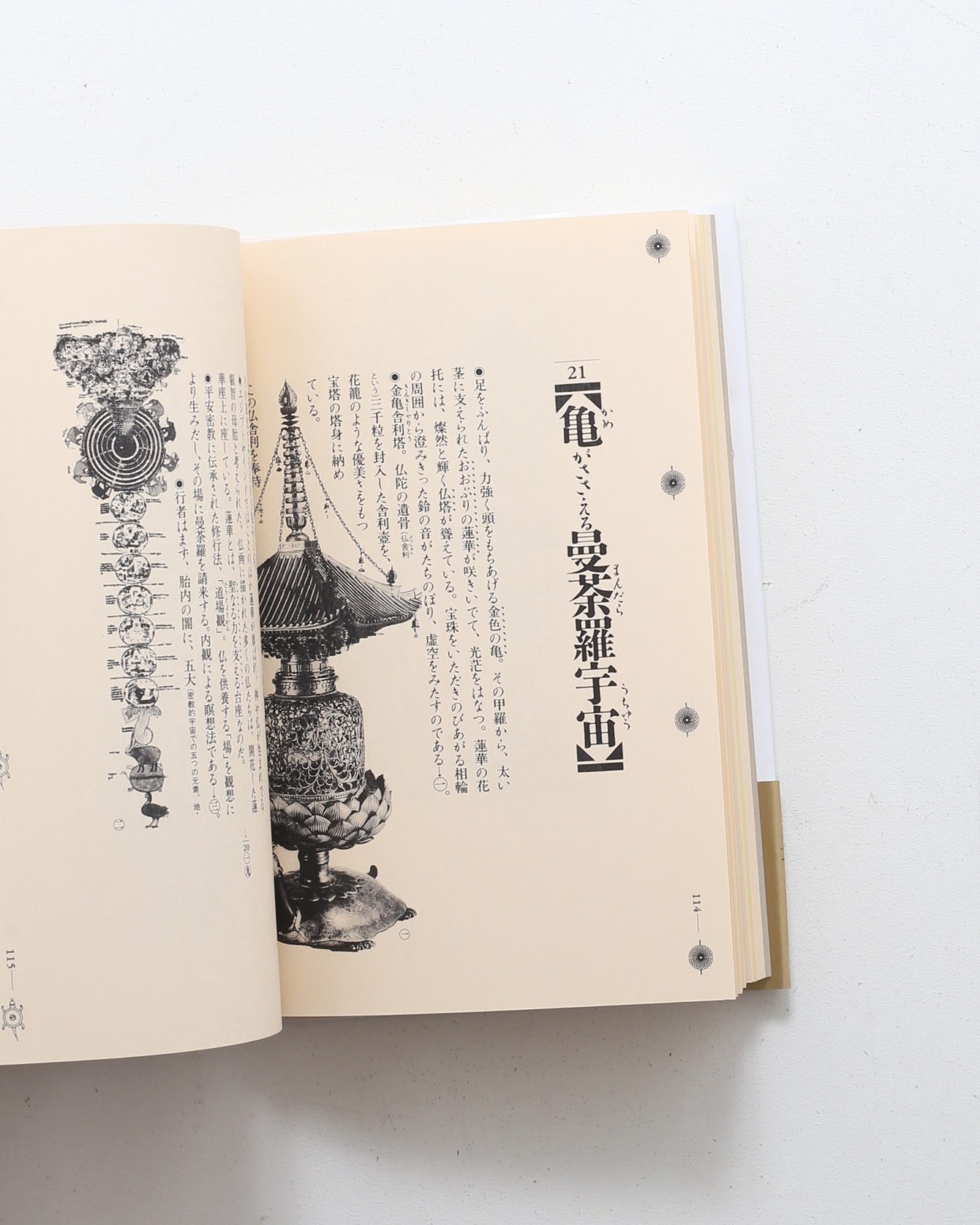 グラフィックデザイナーとして活躍する杉浦康平の評論。日本およびアジアの宗教や信仰を中心とした絵画、および寺院や祭の装飾品に組み込まれた「カタチ」の文脈を、デザインの視点から読み解く。杉浦自身による、一体化した挿絵とテキストのレイアウトも見どころ。カバーに少スレ、少やけ、少汚れあり。天地に少汚れあり。本文の状態は並。